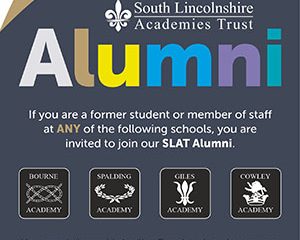 Former students and members of staff can join our SLAT Alumni We are pleased to officially launch the SLAT Alumni, which is for former students and members of staff from ALL schools that are part of South Lincolnshire Academies Trust. The main aims of our Alumni are to raise the aspirations of our Read more…