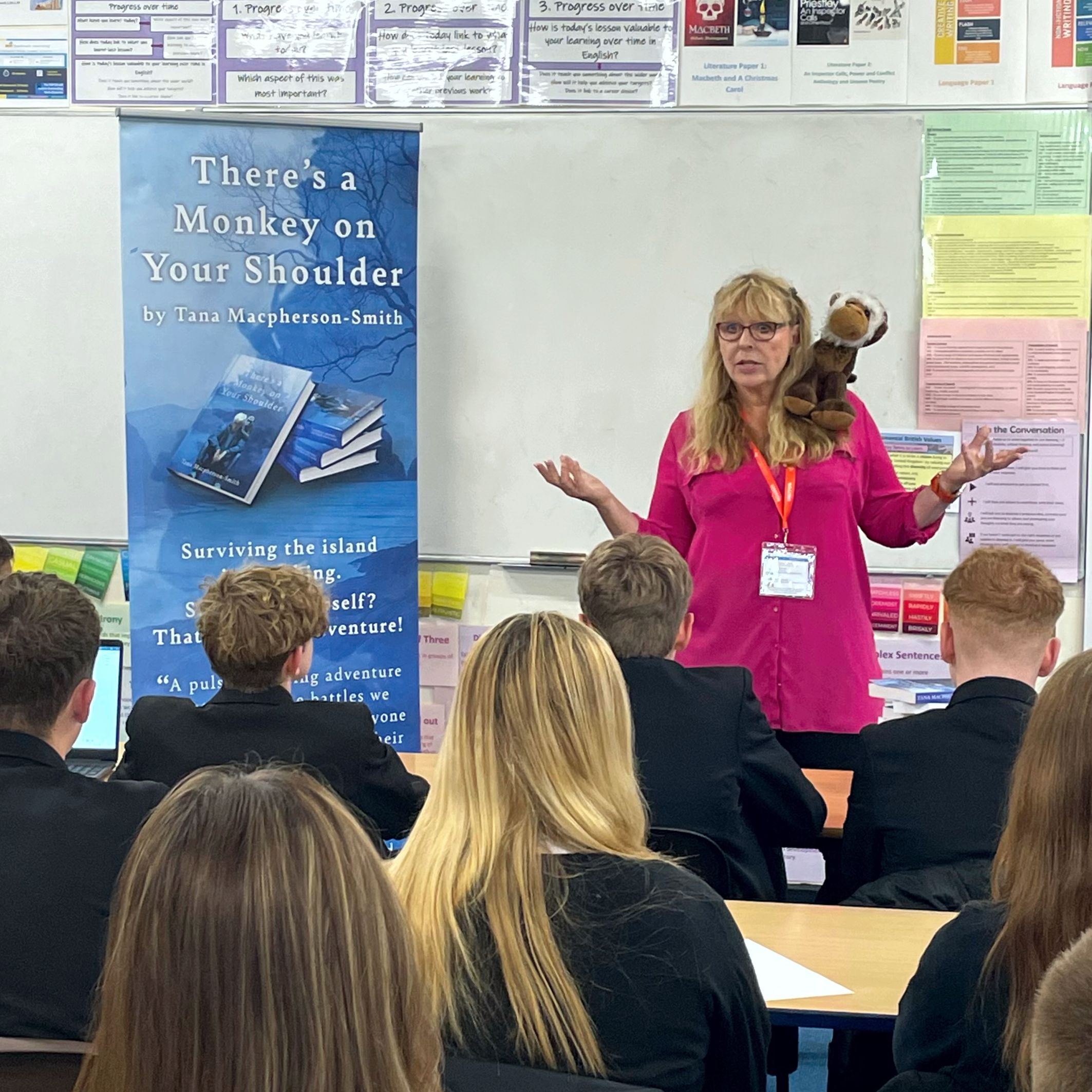 We were pleased to welcome author Tana MacPherson-Smith (and Grim the monkey) to Spalding Academy as she kindly gave her time to speak to a class of Year 10 students by delivering a creative writing workshop, and also spoke to the whole of Year 9 about mental health in an assembly.